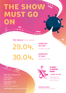 18.4. und 19.4. Unsere Chorkonzerte in der TSV Turnhalle Klein-Auheim