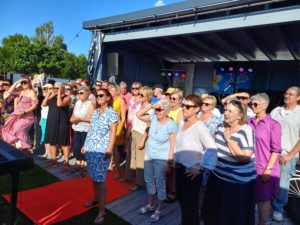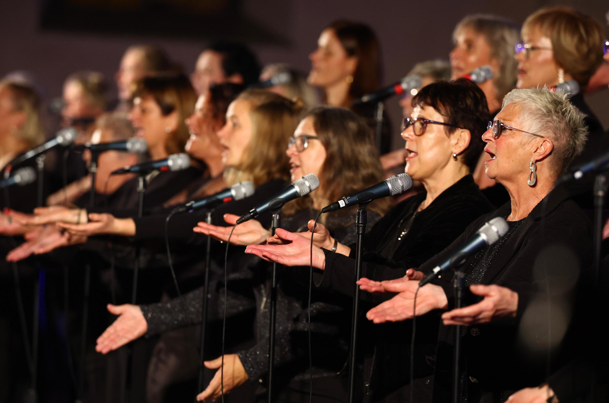 Der Saal war voll besetzt und die Stimmung gut. „Ton in Ton“ ging als letzter Chor auf die Bühne. Locker und leicht, und wie immer ohne Noten, bewegten wir uns zur Musik.