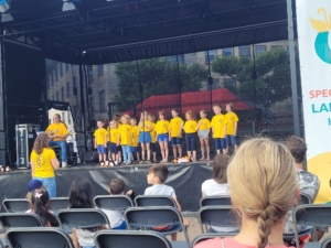 Bei den Special Olympics Landesmeisterschaften durften wir im Rahmen des Familienprogramms eine Siegerehrung musikalisch begleiten. Nachdem zunächst unsere „Tonfüchse“ ihr Lieder mit viel Choreo präsentiert hatten, eine inklusiv Tanzgruppe auftrat und die Siegerehrung vollzogen war, brachte „Ton in Ton“ das Publikum erneut in Stimmung.