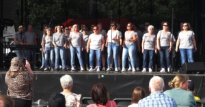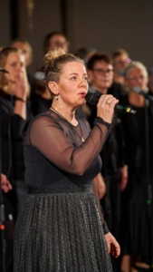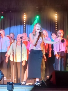 Der Saal war von Anfang an dabei und klatschte mit. Wieder ein tolles Gefühl auf der Bühne zu stehen. Noch besser war, dass unsere 5 neuen Männer dem Chor-Sound einen weiteren Schub gaben.