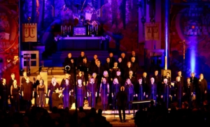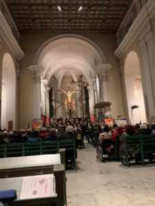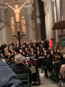 17:00 Uhr, die „Voices kommen auf die Treppe vor dem Altar. Nach kurzen Begrüßungsworten legten sie los. Insgesamt 8 Songs, sehr gut arrangiert und vorgetragen. Was mit längerem Applaus belohnt wurde.