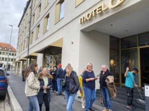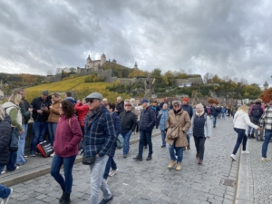 Mit dem Bus um 08:30 Uhr ging´s los nach Würzburg. Fast 60 Sängerinnen, Sänger und Begleitung. Im Motel One in Würzburg angekommen, wurden wir von Rolf Schlegelmilch, dem Manager des Würzburger Chores „Voices“ , mit denen wir am Sonntag gemeinsam in der St. Stephan Kirche ein Konzert geben werden, empfangen.