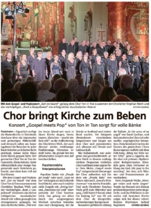 „Wow, wow und nochmals wow! – was für ein Konzert – ganz großes Kino – ein professionelles Konzert mit tollen Solistinnen und Solisten mit einem überaus harmonisch klingenden, phantastisch mitreißenden Chor! Ich bin begeistert und ihr habt die Kirche gerockt! Ein cooler und lockerer Chor mit viel Herz und Qualität! Einfach super – Glückwunsch!