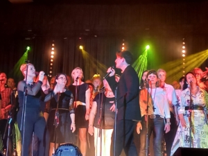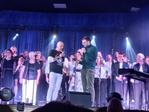 Dr. Maximilian Bieri, der als Fan ganz vorne sitzt und den Chor zu dessen Überraschung bittet, bei seiner Amtseinführung im September zu singen. Er ziert sich auch nicht, mit Stefan Weih zusammen „Angel“ (Robby Williams) zu singen und das Publikum quittiert das mit donnerndem Applaus. Was für ein Abend!